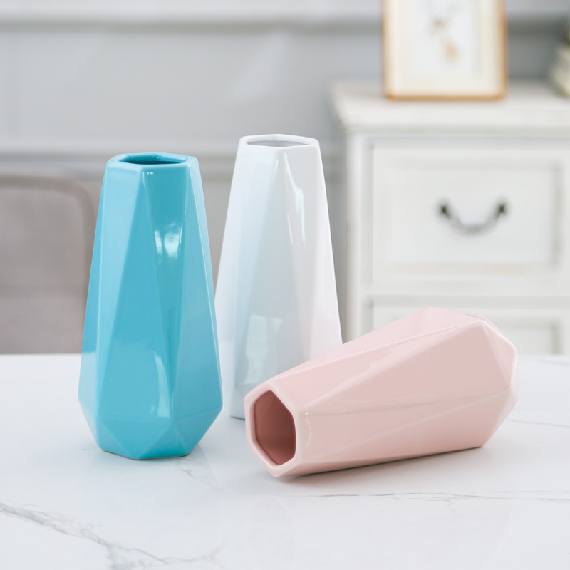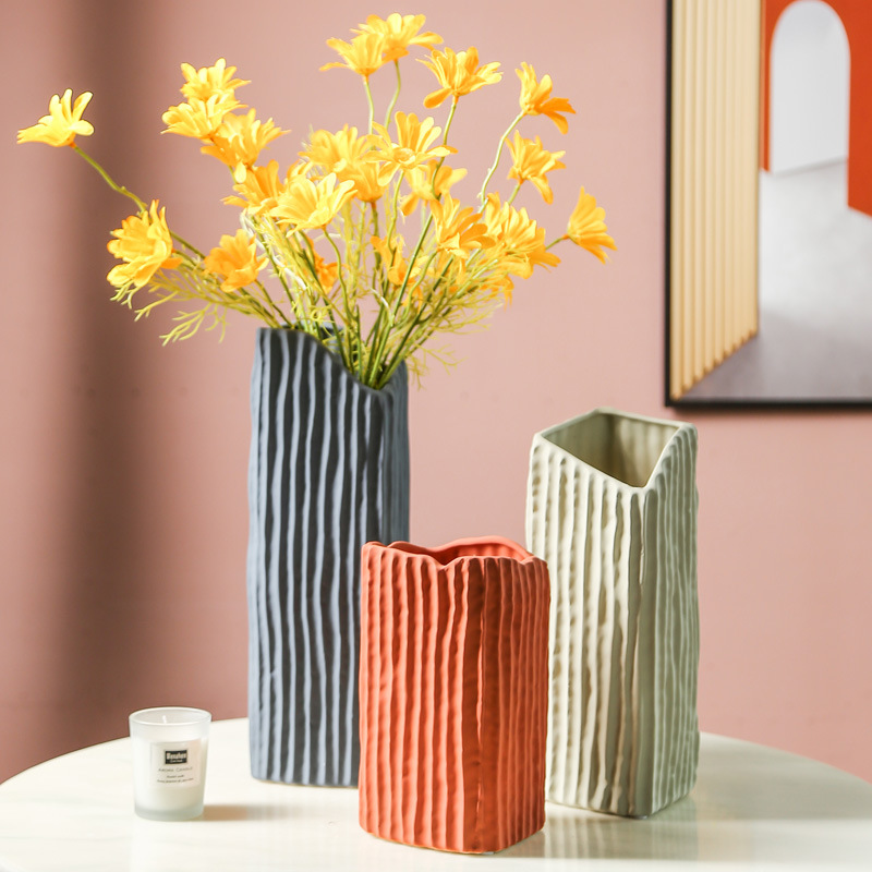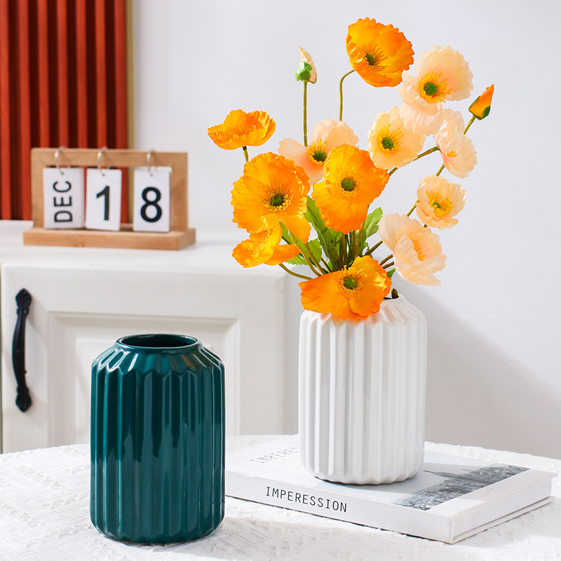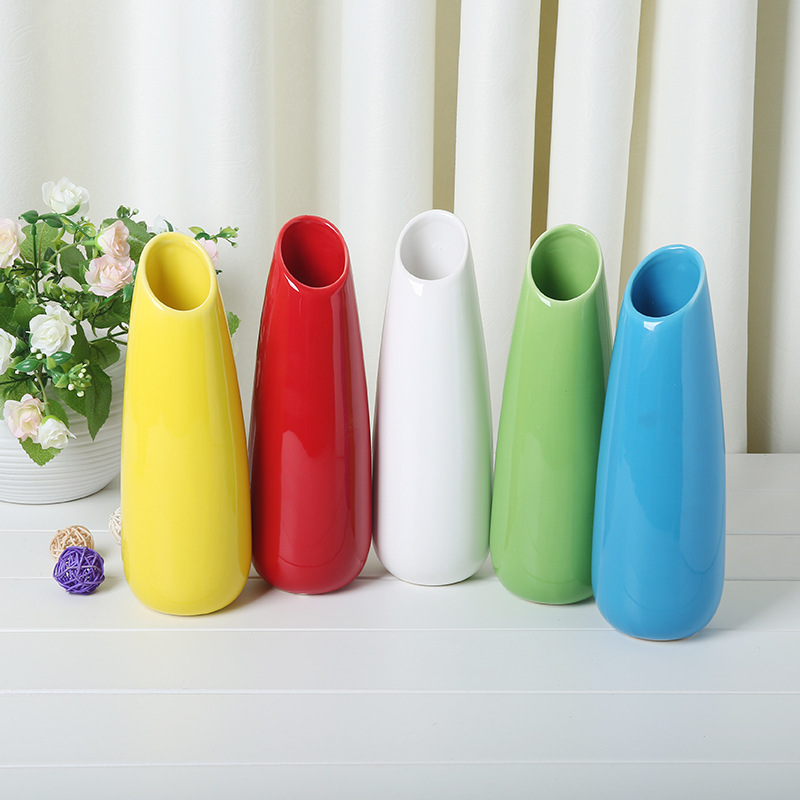 色とりどりの斜め口の白いシンプルな陶磁器の花瓶北欧の現代的な家庭の客間のレストランの乾いた花の生け花の装飾の置物