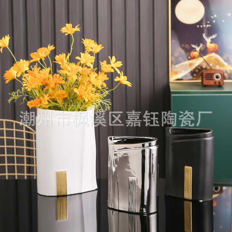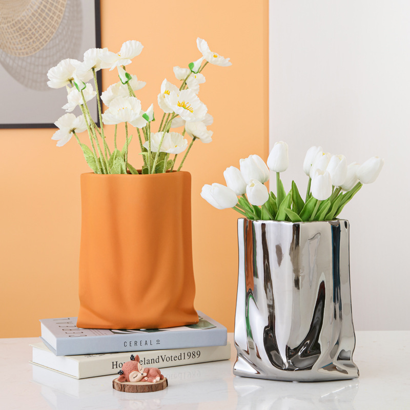 北欧創意モランディメッキ銀色布袋花瓶軽豪華置物リビングテーブル陶磁器飾り生け花器
