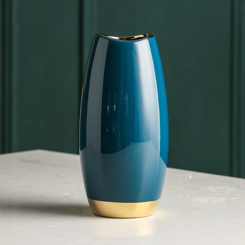 ネット赤直筒メッキ金辺墨緑陶磁器花瓶家庭客間食卓テレビ戸棚家庭装飾品置物