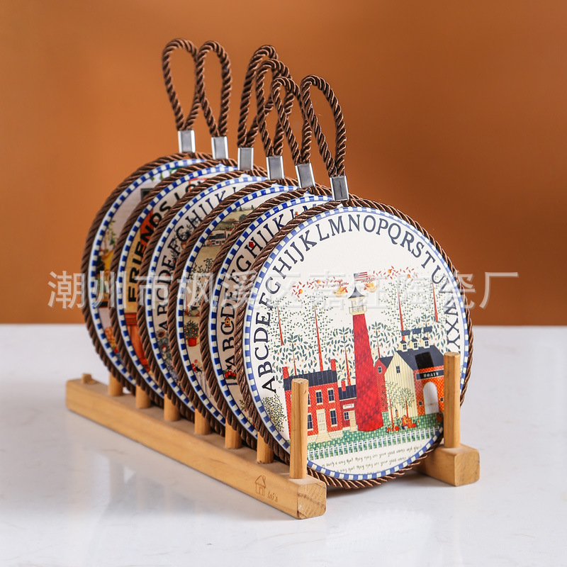 2022ネット赤イギリス古典ヨーロッパ式童話陶磁器円形食マット砂鍋マット家庭用防水断熱マット