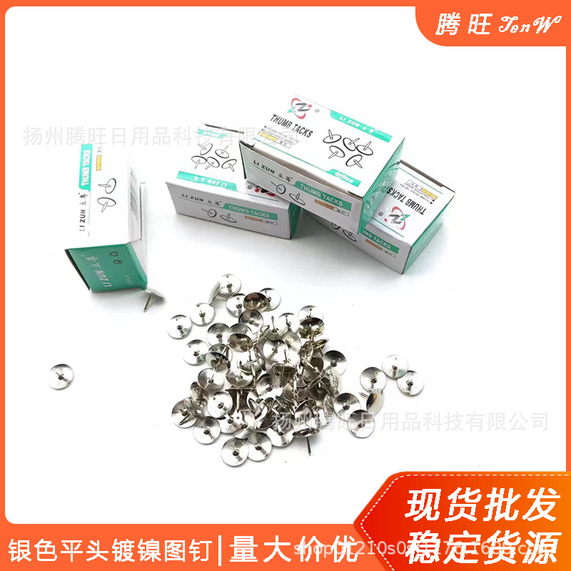 金属の釘押しの画鋲はニッケルメッキの手で小さいサイズの丸い頭を押して事務用品の大きい頭の釘の工字の画鋲の卸売りを打ちます。