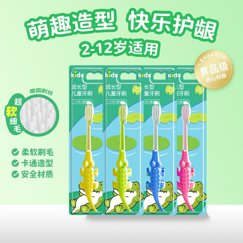 【4本セット】子供用歯ブラシの細い柔らかい毛保護歯茎の清潔漫画ワニ商超家庭用3-6-12歳の現物