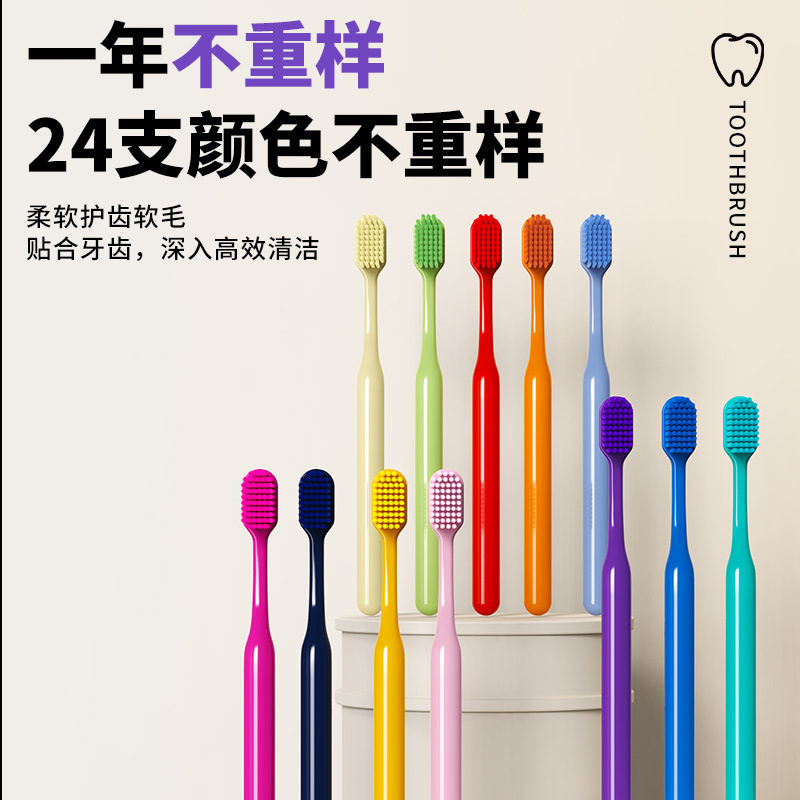 カラフルな Douyin 人気の柔らかい毛歯ブラシワイドヘッド大人の家庭用 24 色独立したパッケージ手動ファミリーパックカスタマイズ在庫あり