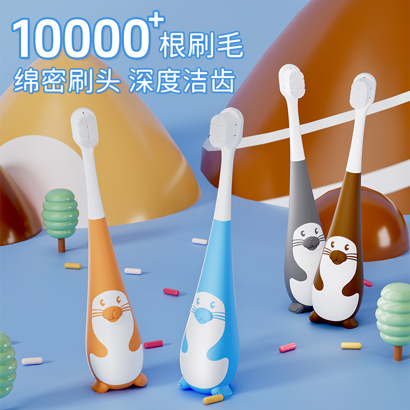 柔らかい1万本の毛の歯ブラシは歯茎のアシカの漫画の動物の形の歯ブラシを保護します。