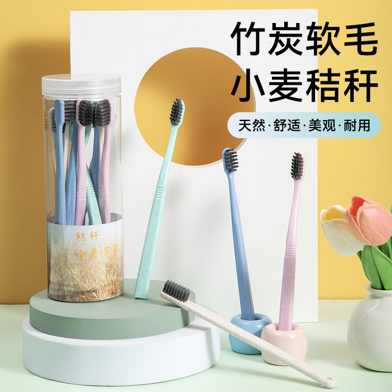 10本入収納桶わら竹炭軟毛保護歯茎小頭歯ブラシ成人家庭用露店清潔スポット