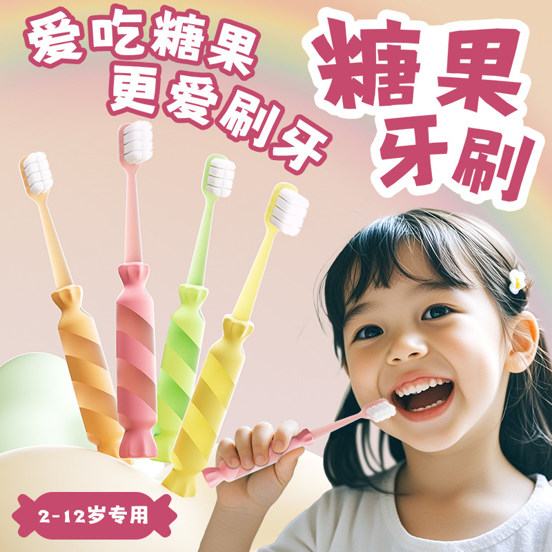 子供のキャンディー色の柔らかい毛の歯ブラシは歯茎の清潔な歯を保護します。