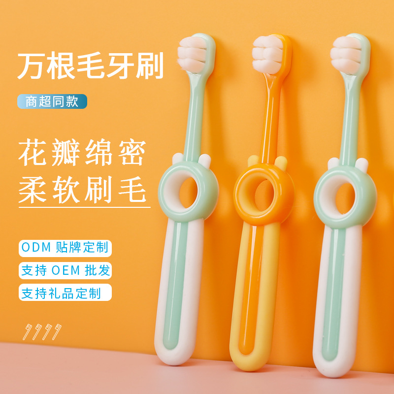 子供の1万本の毛の歯ブラシの柔らかいブラシの毛の保護の歯茎の口腔は0-6-12歳の赤ちゃんの贈り物のlogoをきれいにします。
