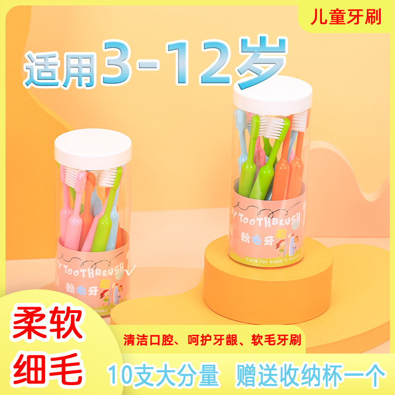【10本収納桶】子供用歯ブラシの細い柔らかい毛の小さい頭は携帯して口腔をきれいにします。3-6-12歳の現物です。