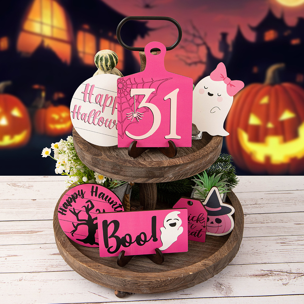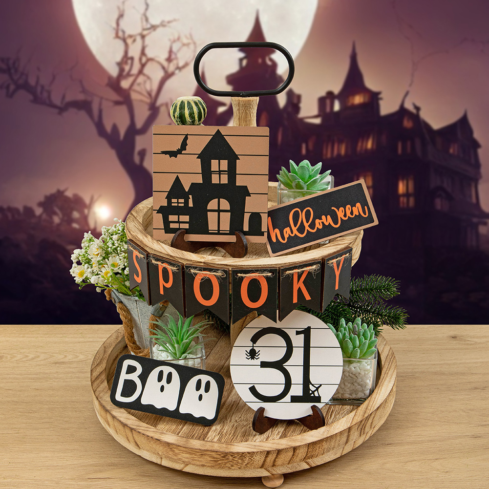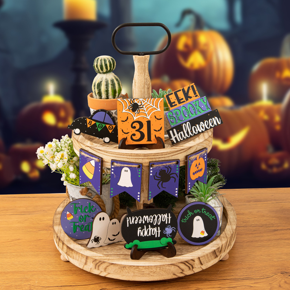 クロスボーダーハロウィンレイヤードトレイ装飾ホラーゴーストフェスティバルミニポーションゴーストエレメントウッドサイン