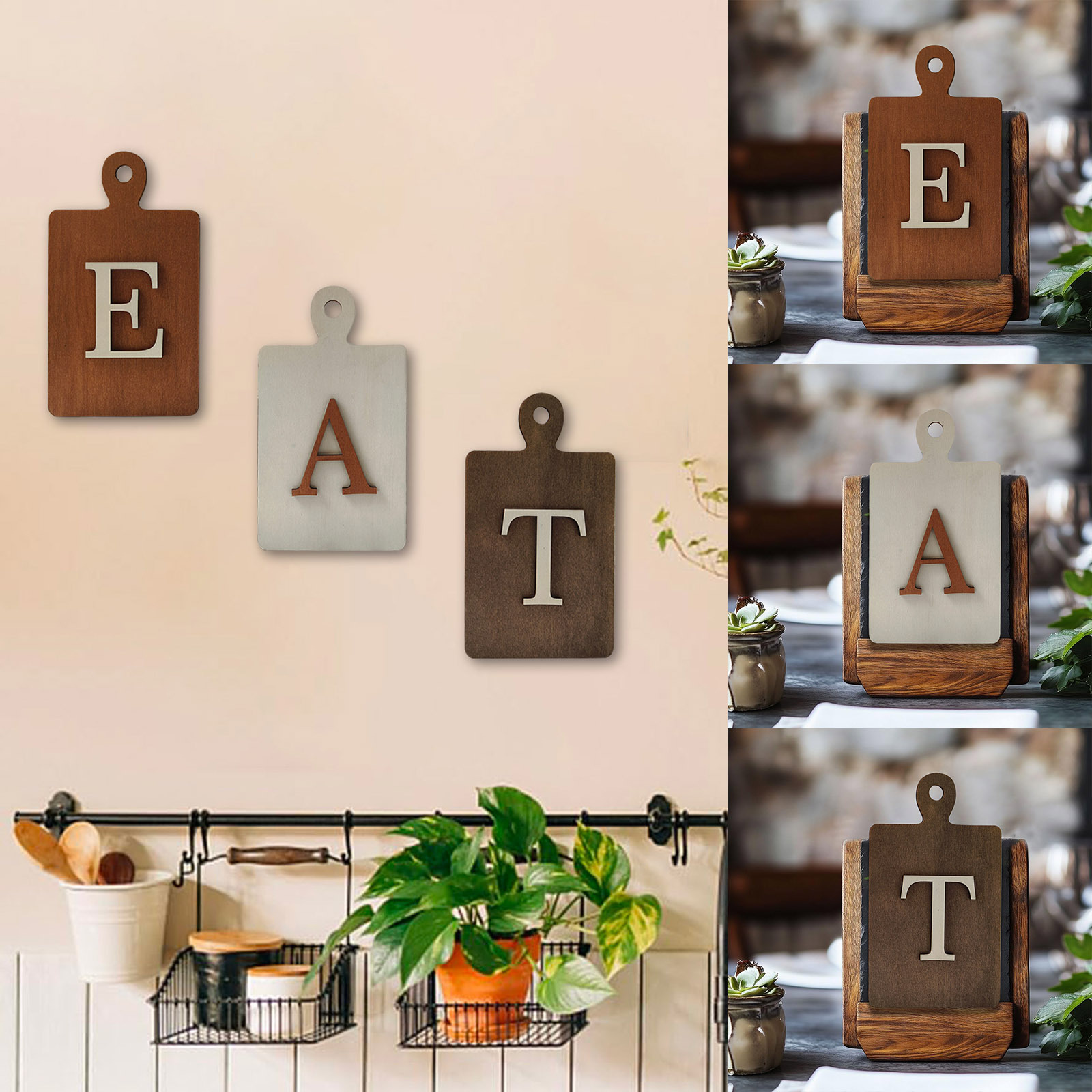 クロスボーダーファームシンプルなスタイルEATロゴ木製看板キッチンリビングルーム壁アート装飾プラーク