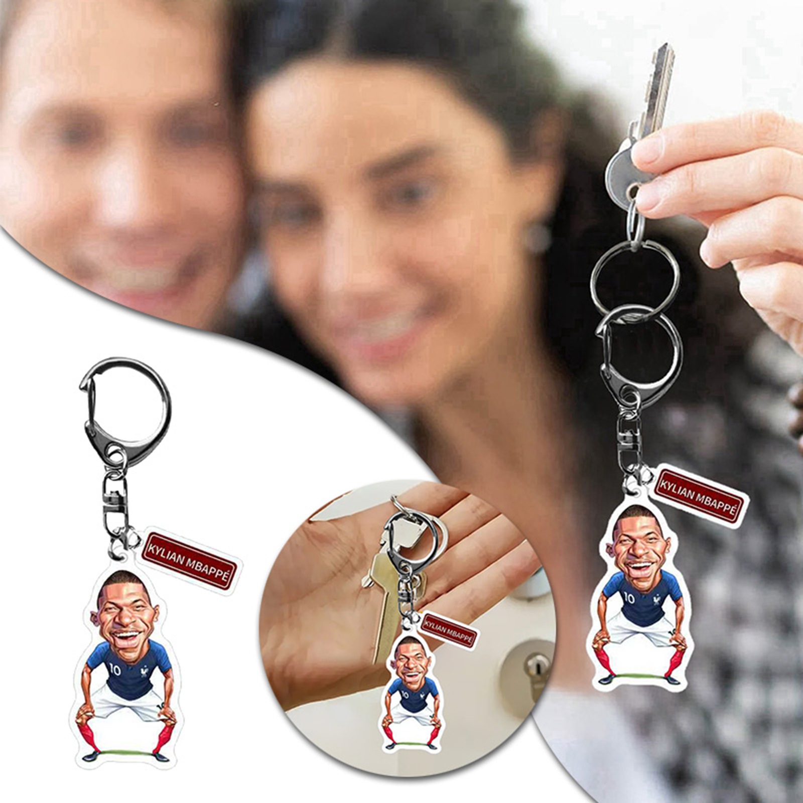 国境を越えたサッカースターkyian Mbappeアニメのキーホルダーアクリル工芸品バックパックの鍵ストラップ