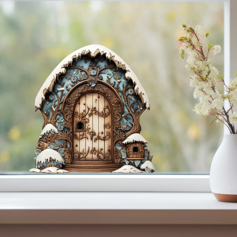 新しい冬の庭の童話の扉の精霊の扉の花園の木製の装飾品の家庭の木製の工芸品の小さい扉