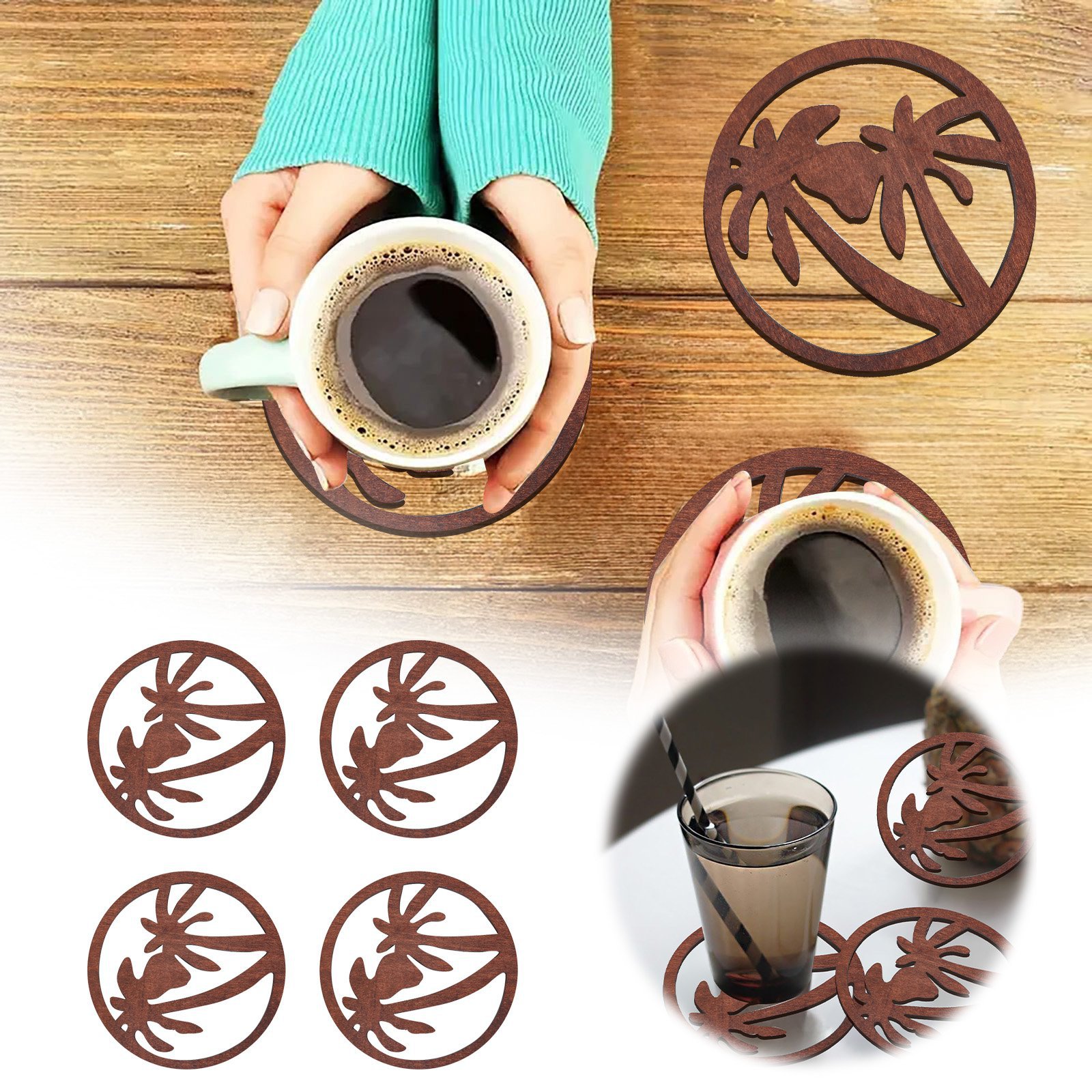 丸いカレー色のコースターアメリカの田舎の家庭の食卓の木製のレトロな装飾の透かし彫りのデザインの断熱マット4pcs