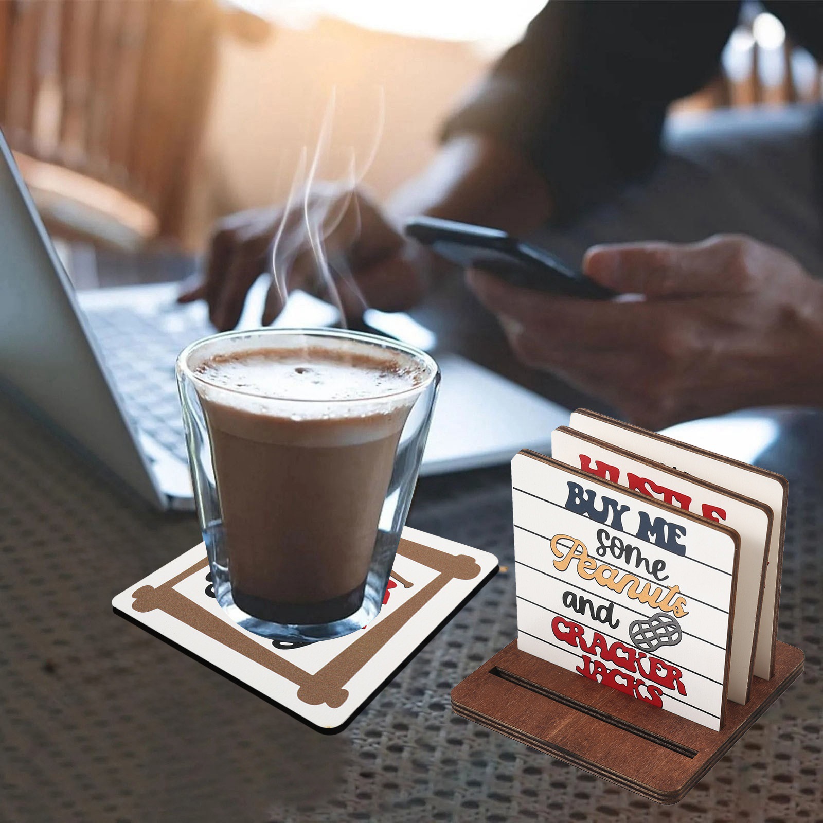 クロスボーダー創意アメリカ野球スタイル正方形コースターコーヒーバーデスク木製コースター断熱マット