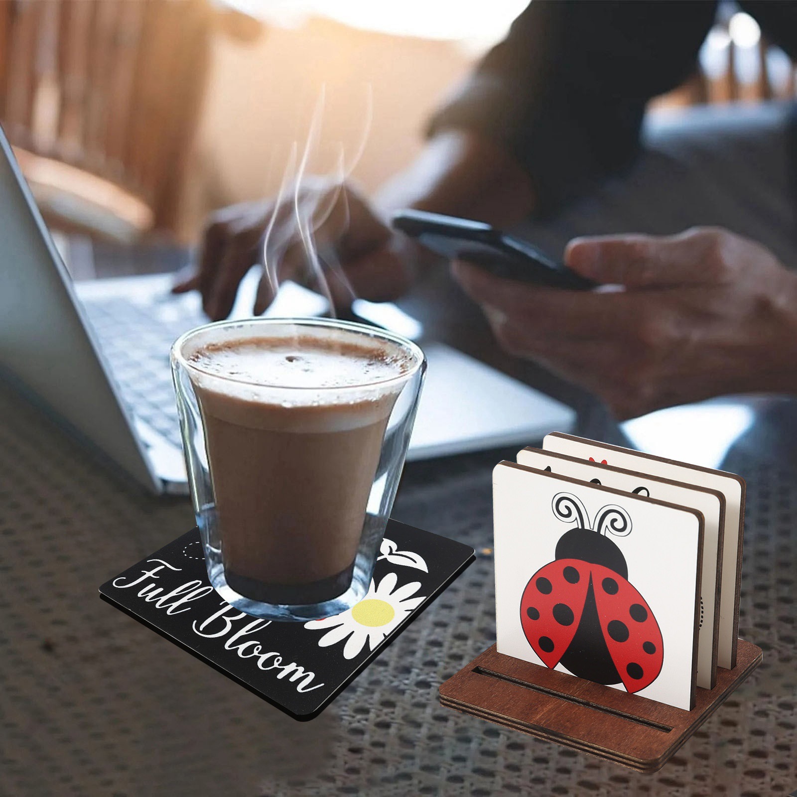 新しいシンプルなコーヒーのテーマの木製のコースターのアイデアのコーヒーの図案の四角いコースターのデスクトップの断熱マットの4つのセット