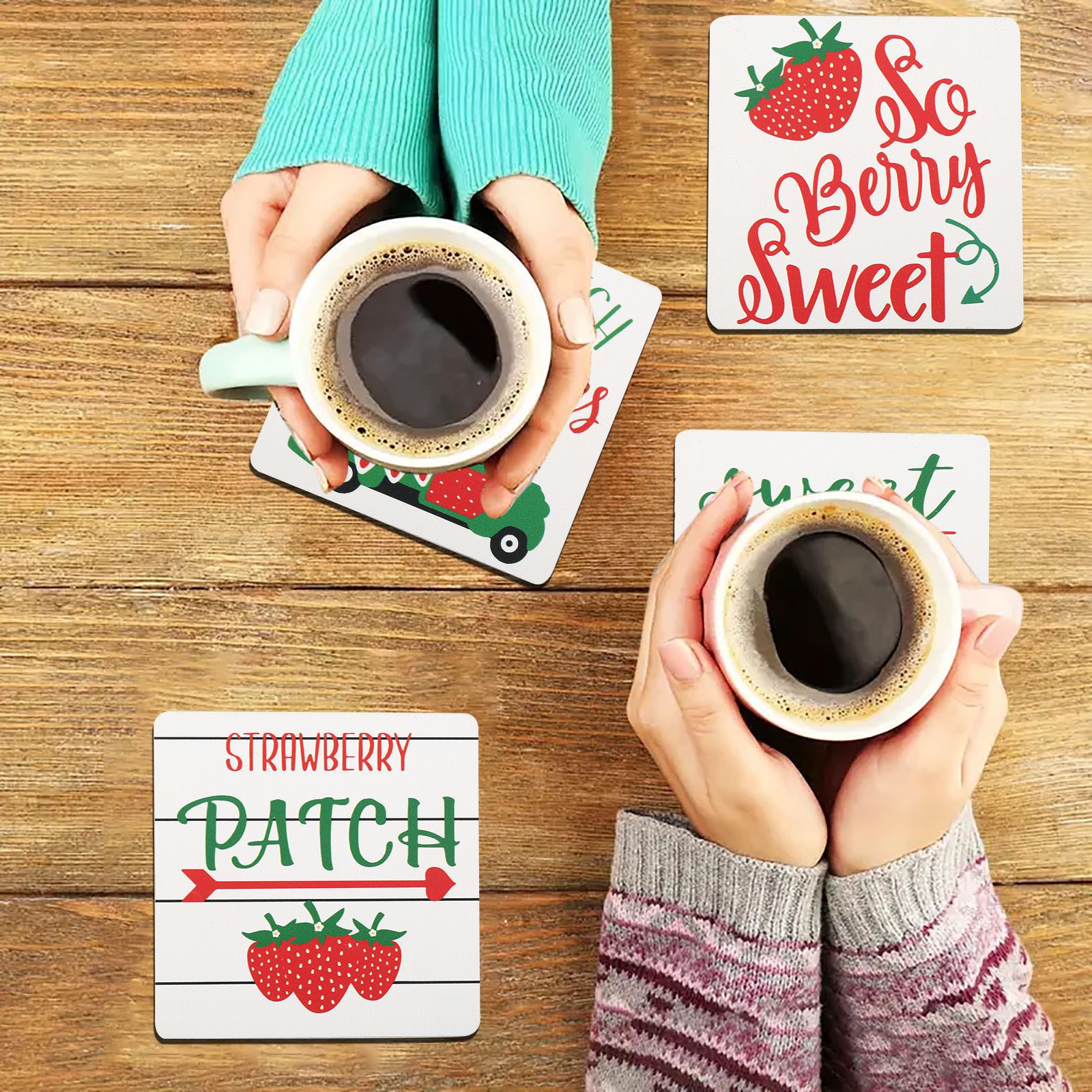 夏の甘い時間ホームコーヒーバー装飾断熱マット農場いちご模様木製四角いコースター