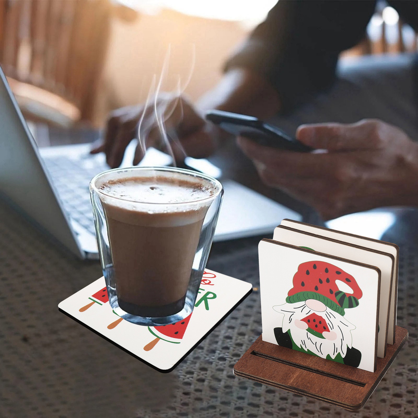 夏の愛のスイカの小人の図案の装飾の四角形のコースターの創意的な木製の工芸品の置物の防火マット