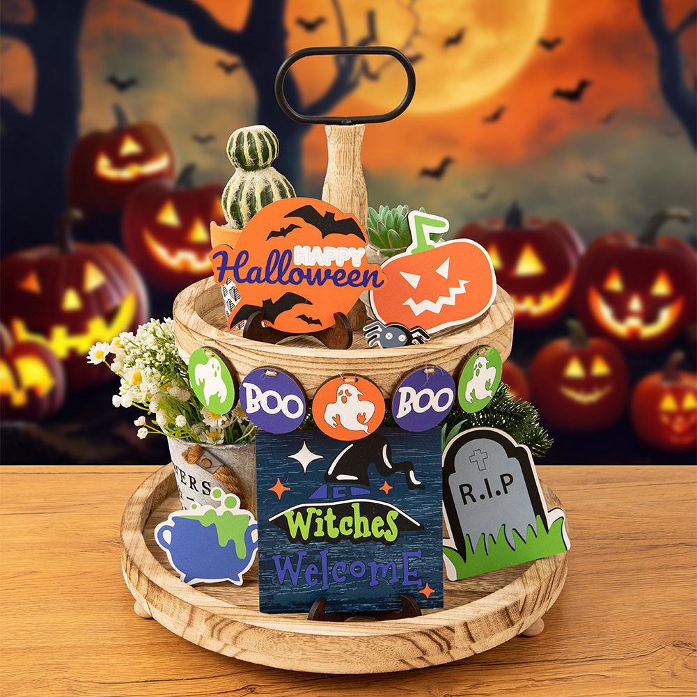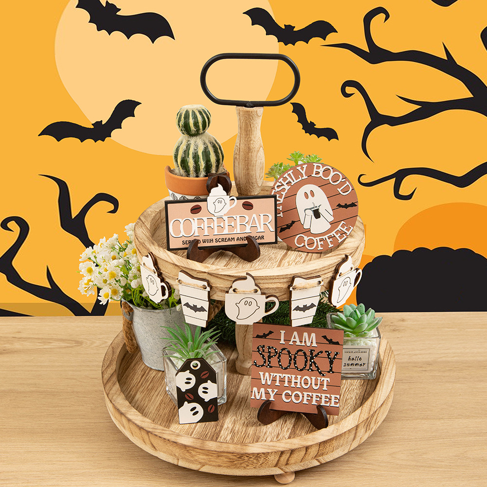 2023ハロウィーンコーヒーカウンター配置置物セット層パレット装飾木製工芸品置物