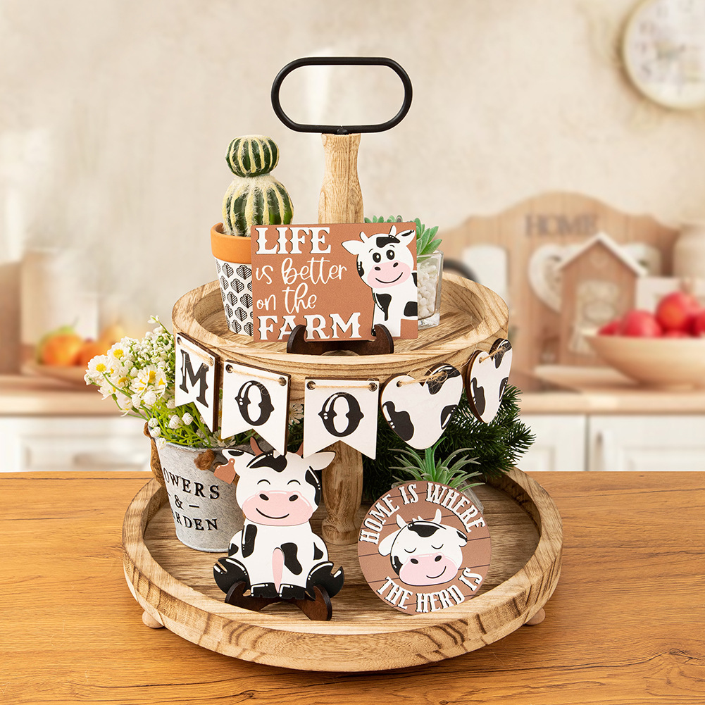 国境を越えて起爆した農荘乳牛の階層トレイ装飾品家庭のデスクトップの木製工芸品のアイデア装飾品