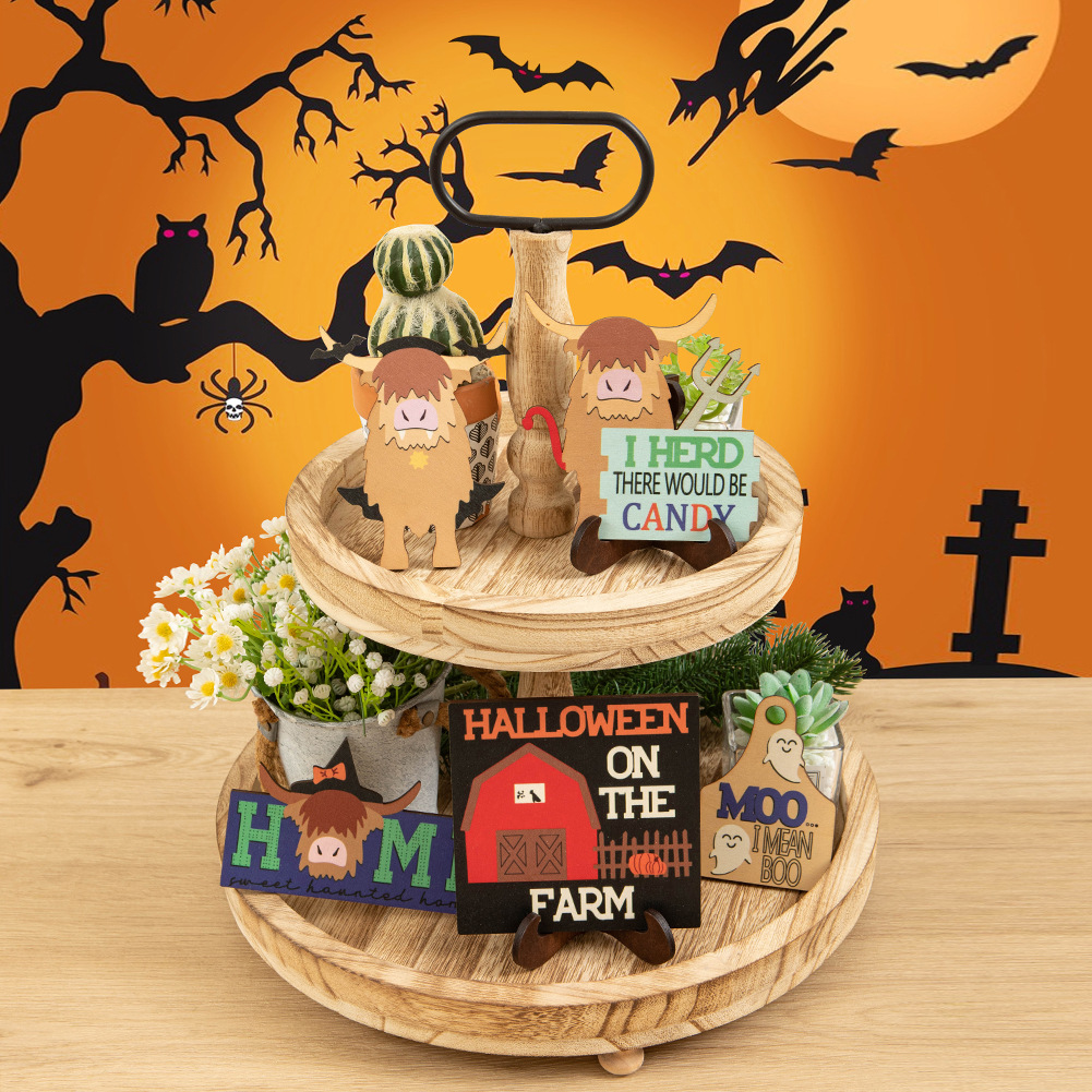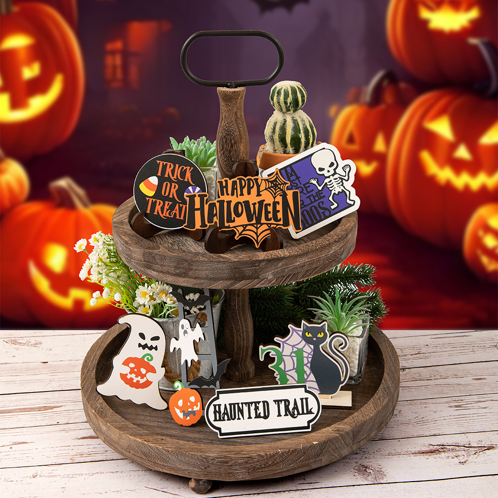 新型農場ハロウィーンヤクシリーズデスクトップ層トレイ装飾家庭木製工芸品置物