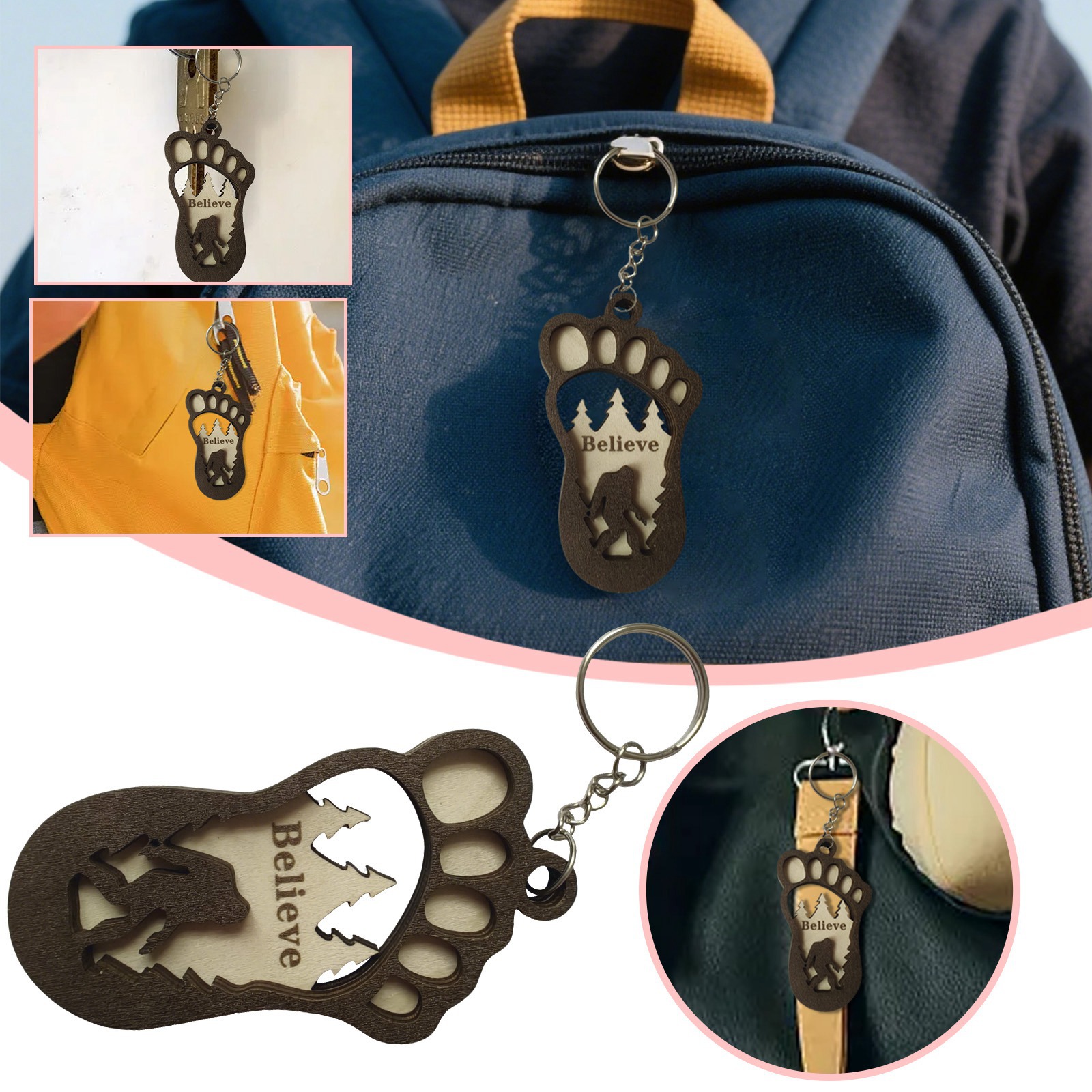 クロスボーダーシンプルな木製ビッグフット装飾キーホルダー森の野人スタイル二層木製工芸品ペンダント