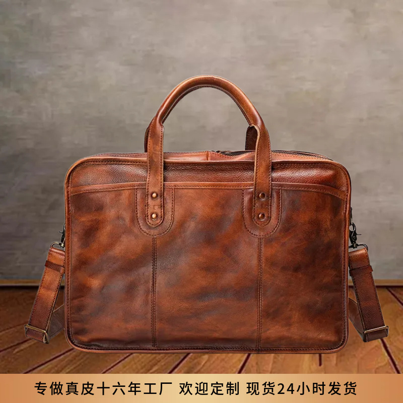 クロスボーダー本革手提げメンズブリーフケース高級16インチパソコンバッグ高級感シングル肩斜めがけバッグ植なめレトロ