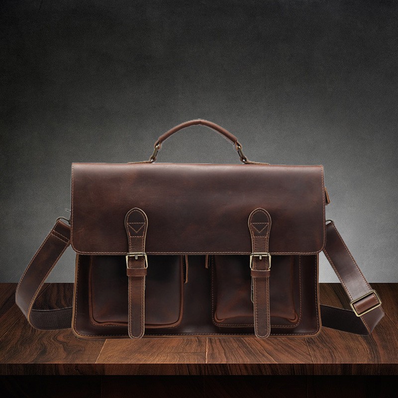 本革レトロ風ハンドバッグ男性用バッグ蓋式狂馬皮斜めショルダーバッグ出張ビジネスノートブリーフケース
