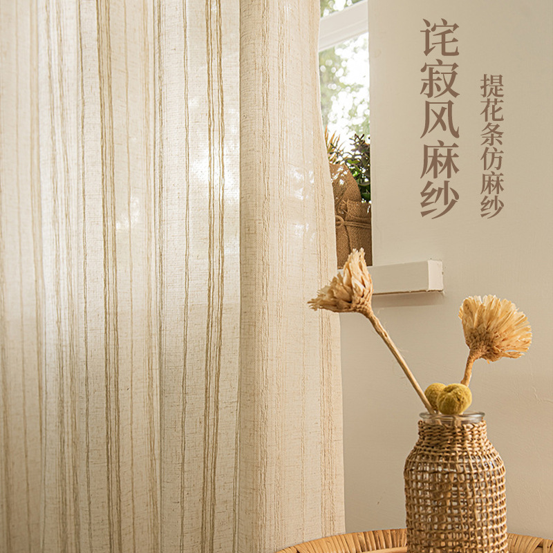寂しい風の亜麻の糸の綿麻のジャカードの縞の糸の寝室の客間の舞い上がる窓は光を通さないで人をまねて麻の紗の製品をまねます。