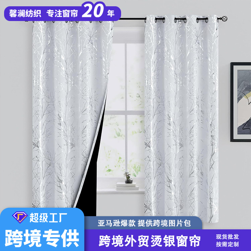 クロスボーダーアマゾンシルバーホワイトホットシルバーカーテン寝室リビングルーム完全遮光100%外国貿易リングサンシェード断熱布