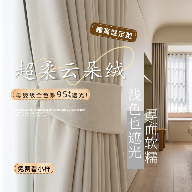 新品フル遮光シェニール云つるフランネルクリーム风カーテンオーダーメイドリビングルーム寝室遮光カーテン完成品