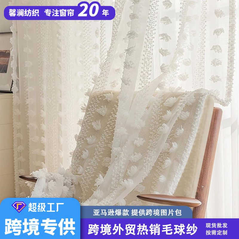 国境を越えた対外貿易フランスの白いベルベットの毛玉糸透明カーテンヨーロッパのガーゼ寝室の子供の部屋の窓糸完成品