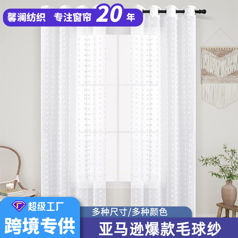 国境を越えたアマゾンの白いベルベットの毛玉寝室のカーテン欧米の白い糸のレトロな波点の花の糸の透明な糸のカーテン