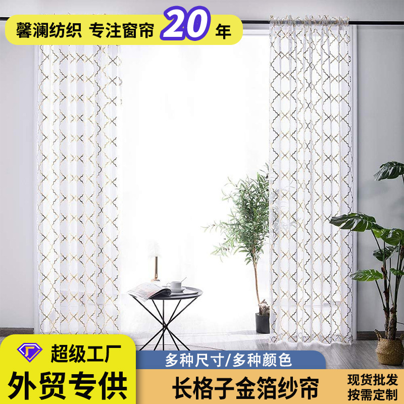 対外貿易クロスボーダー紹興柯橋長格子金箔カーテン遮光客間寝室ベランダシンプルカーテン完成品