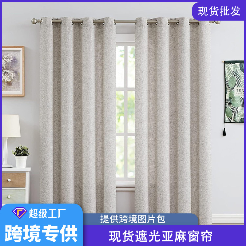 越境貿易用リネンカーテン、遮光性、紹興柯橋産綿麻カーテン生地卸売、既製品、アマゾンカーテン