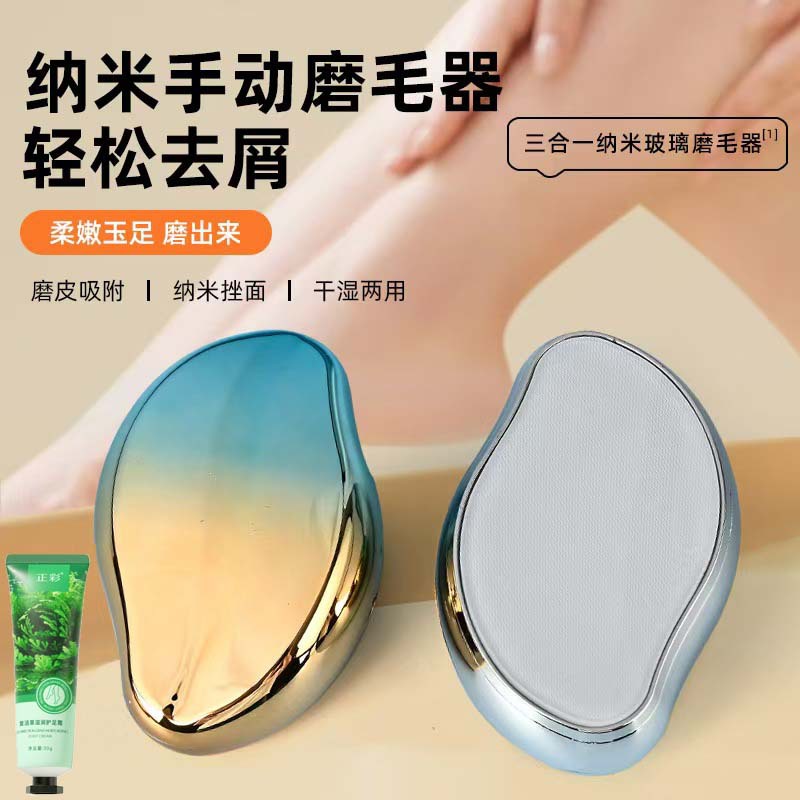 新しい両面ナノガラスヘアリムーバー、脱毛ナイフ、フットグラインダー、角質除去、脱毛、角質除去、脚の毛除去ツール