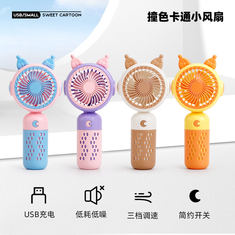 2024手持ちミニ扇風機アニメ携帯三段USB充電子供扇風機プレゼント東南アジア爆発金