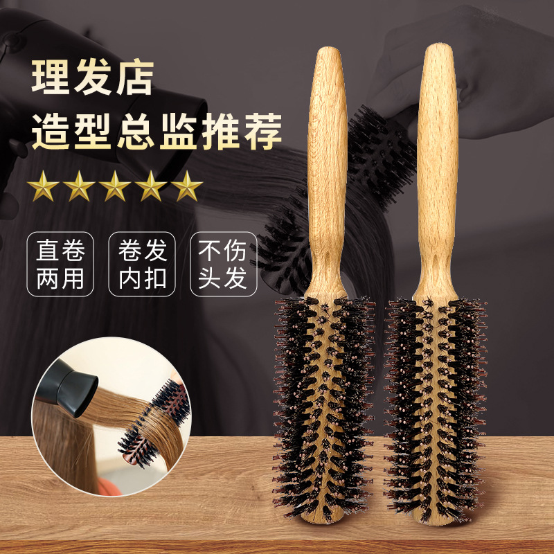 巻き髪の櫛のブタのたてがみの毛のローラーの櫛の円筒の内は家庭の長いまっすぐな髪を掛けて髪の毛を吹きます。