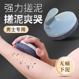 メンズ専用のお風呂の神器の背中の粗い砂を強くこすります。