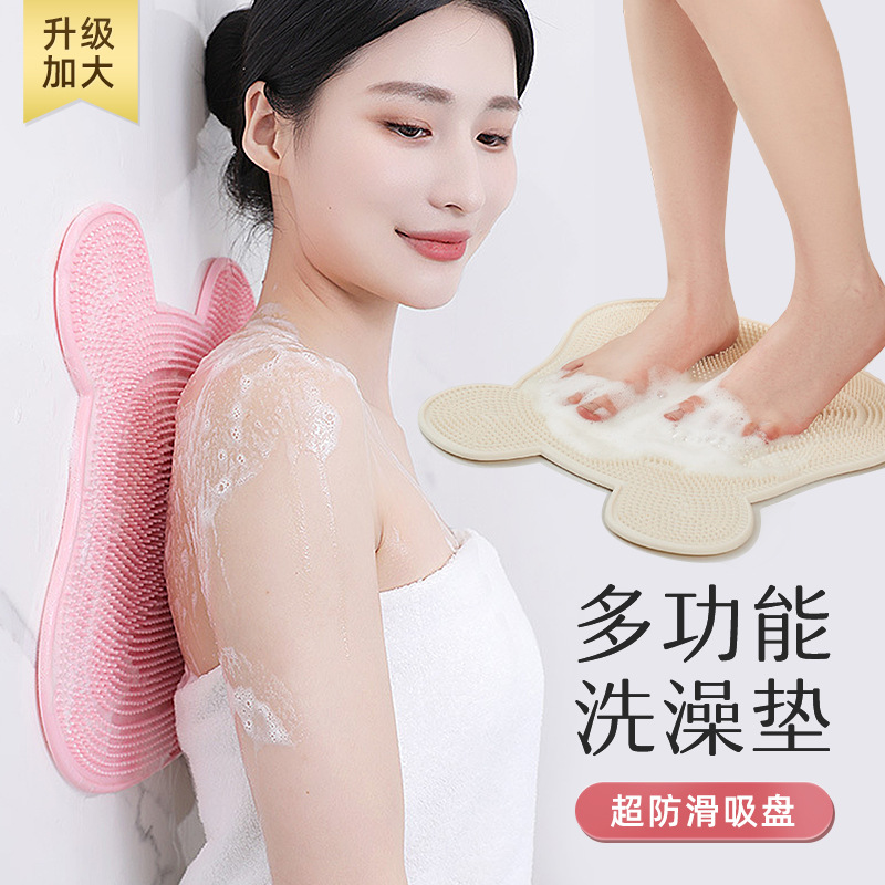 足の神器をこすります。浴室の滑り止めパッドをこすります。