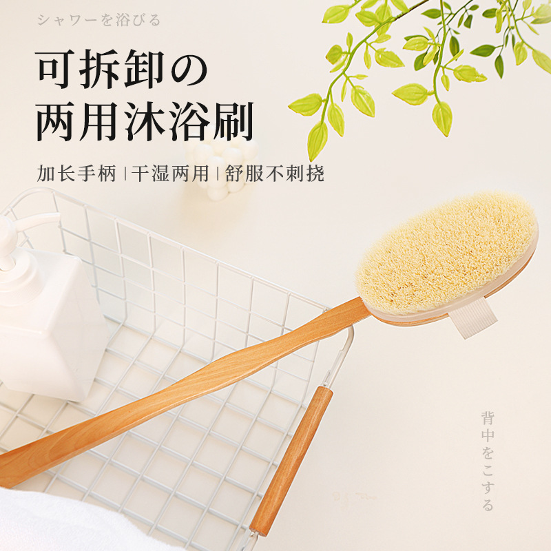 お風呂ブラシは背中の神器の柔らかい毛の長い柄をこすります。