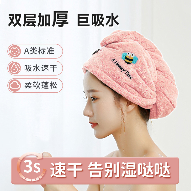 ドライヘアキャップ女性超吸水速乾二重厚いシャワーキャップ2023新型髪拭きタオルシャンプータオル