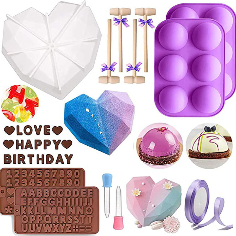 ダイヤモンドハート型シリカゲルチョコレート金型12点セット6連杯ドーム型ケーキ型ハート型シリカゲルセット