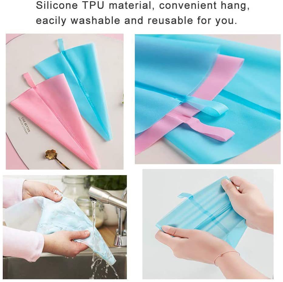 24pcsケーキクリーム表装袋セットクリーム袋再使用変換ノズルシリコン固定リング