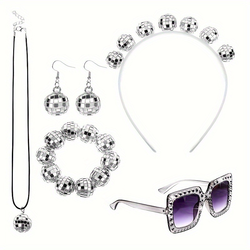 1970sディスコミラーボールネックレスイヤリングブレスレットカチューシャスパンコール髪バンドスクエアフレームクリスタルサングラス