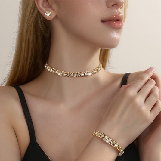 国境を越えた欧米の満水ドリルの3列の密なネックレスのイヤリングのブレスレットのスーツの女性の花嫁の結婚のウェディングドレスのアクセサリー