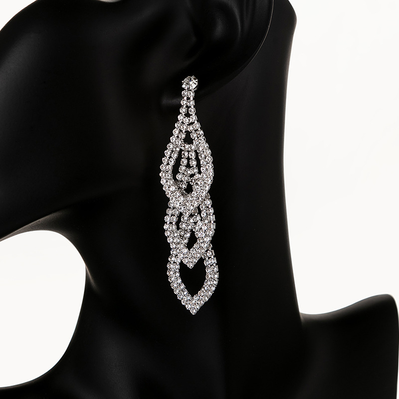 ファッション女性の人工ダイヤモンドの長いフリンジのイヤリングの銀色のドリルのペンダントのイヤリングの花嫁の結婚式の宝石のアクセサリー