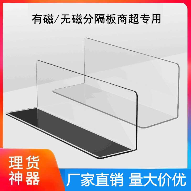 スポット小包スーパー棚仕切板透明pvc磁気吸引バッフルl型磁気仕切り板pvc分割バッフル