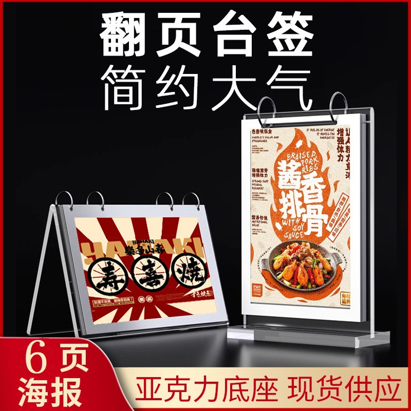 アクリルページめくり台カード胡桃木立牌台札メニューバインダー本宣伝展示棚デスクトップ価格メニュー