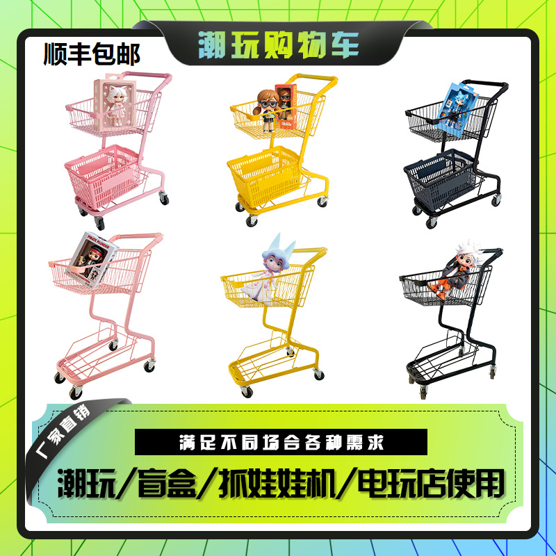 トレンディな二層ショッピングカートクリップ人形マシンペットスナックショップブラインドボックスカラフルな金属インターネット有名人ピンクトロリー