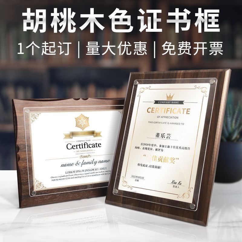 卸売A4表彰状額縁壁掛け賞状フレームクルミ材色A3メダルクリエイティブビジネスライセンス木製額縁